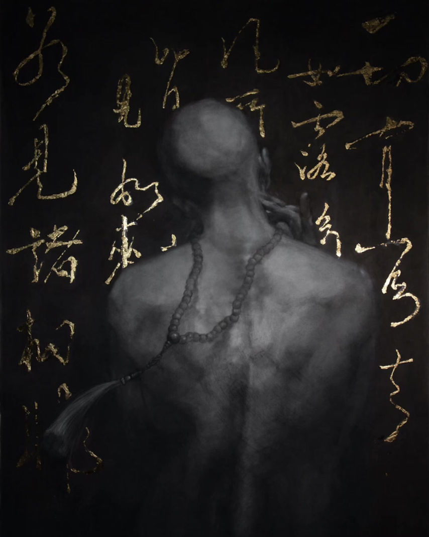 As I created this black and white charcoal piece, I wanted to express the idea that nudity and religion can seem contradictory, but it is precisely this contrast that has drawn my attention to the deeper meaning of a dharma field in the midst of the hustle and bustle of everyday life.